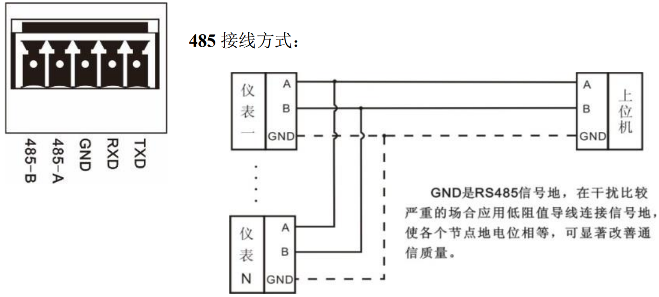 GM7702稱重變送器使用直流 24V 電源。2 路電源接口,方便級(jí)聯(lián),電源端子的正確接線如下圖所示: