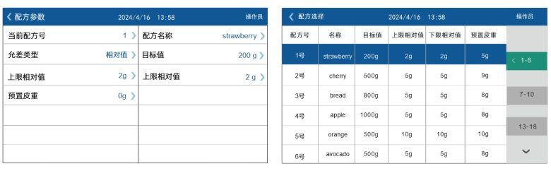 ● 配方編輯功能:支持50種配方配料,每種配方有對應配方號、配方名稱、支持三種允差類型的配方編輯;