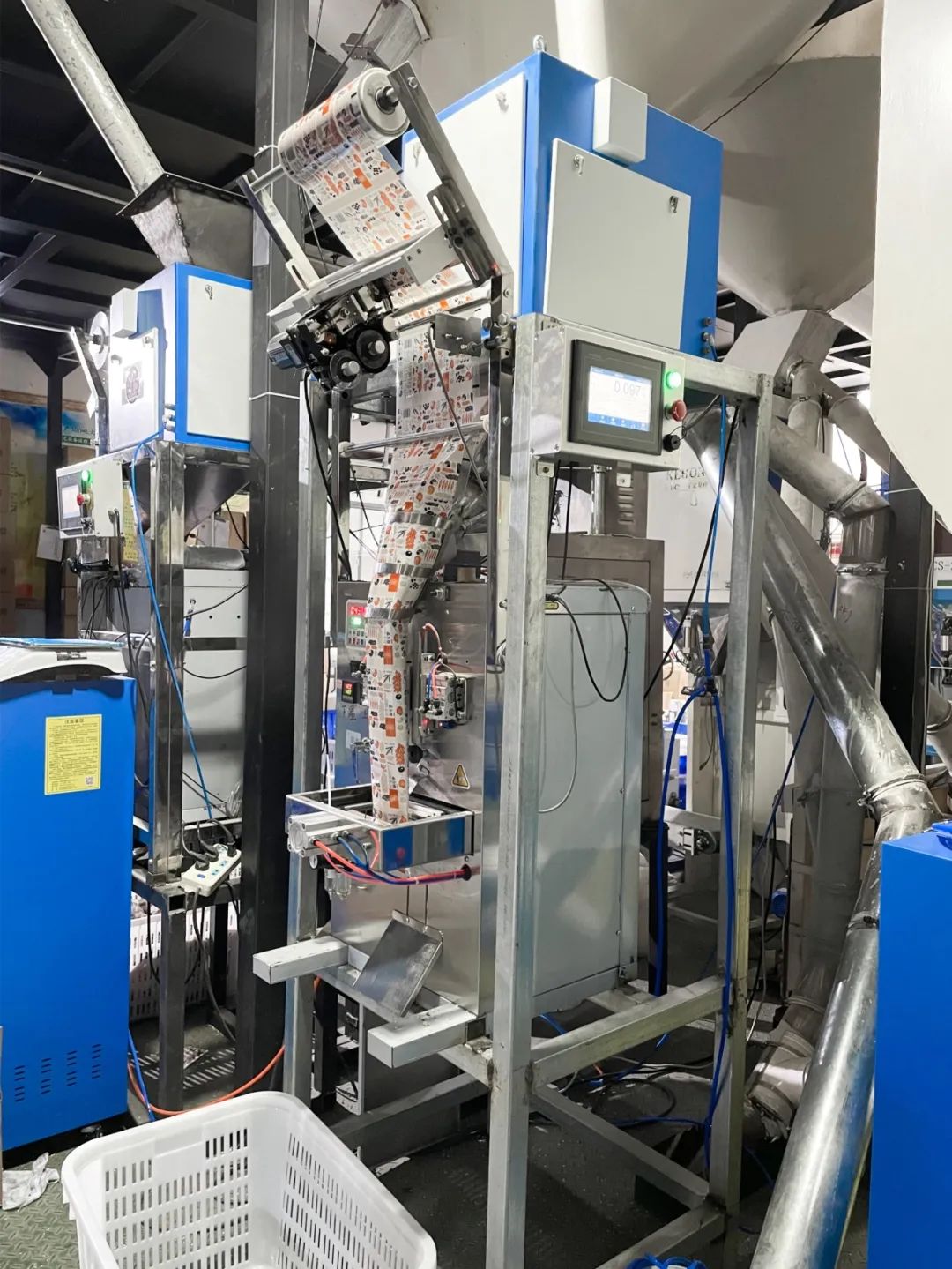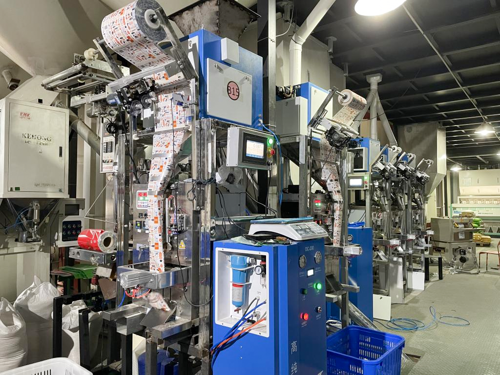 據(jù)了解,一臺(tái)5kg量程的立式包裝機(jī)一小時(shí)能包800袋以上的100克/包的雜糧,全稱振盤給料,精度控制在95%?,F(xiàn)場(chǎng)5臺(tái)立式包裝機(jī),日產(chǎn)量超5萬(wàn)包。