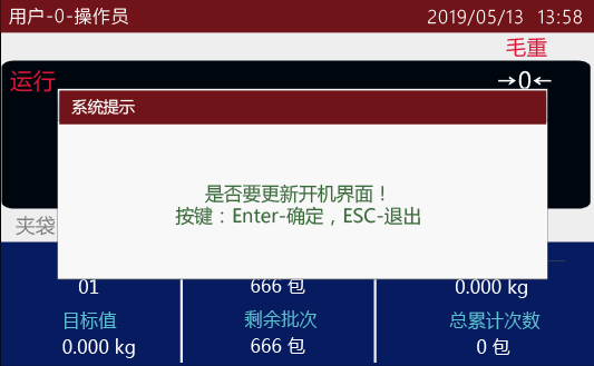 2.2 按系統(tǒng)提示按數(shù)字“2”鍵。則系統(tǒng)提示框內(nèi)容會(huì)變成“是否更新開(kāi)機(jī)界面! 按鍵:Enter-確定,Esc退出”。