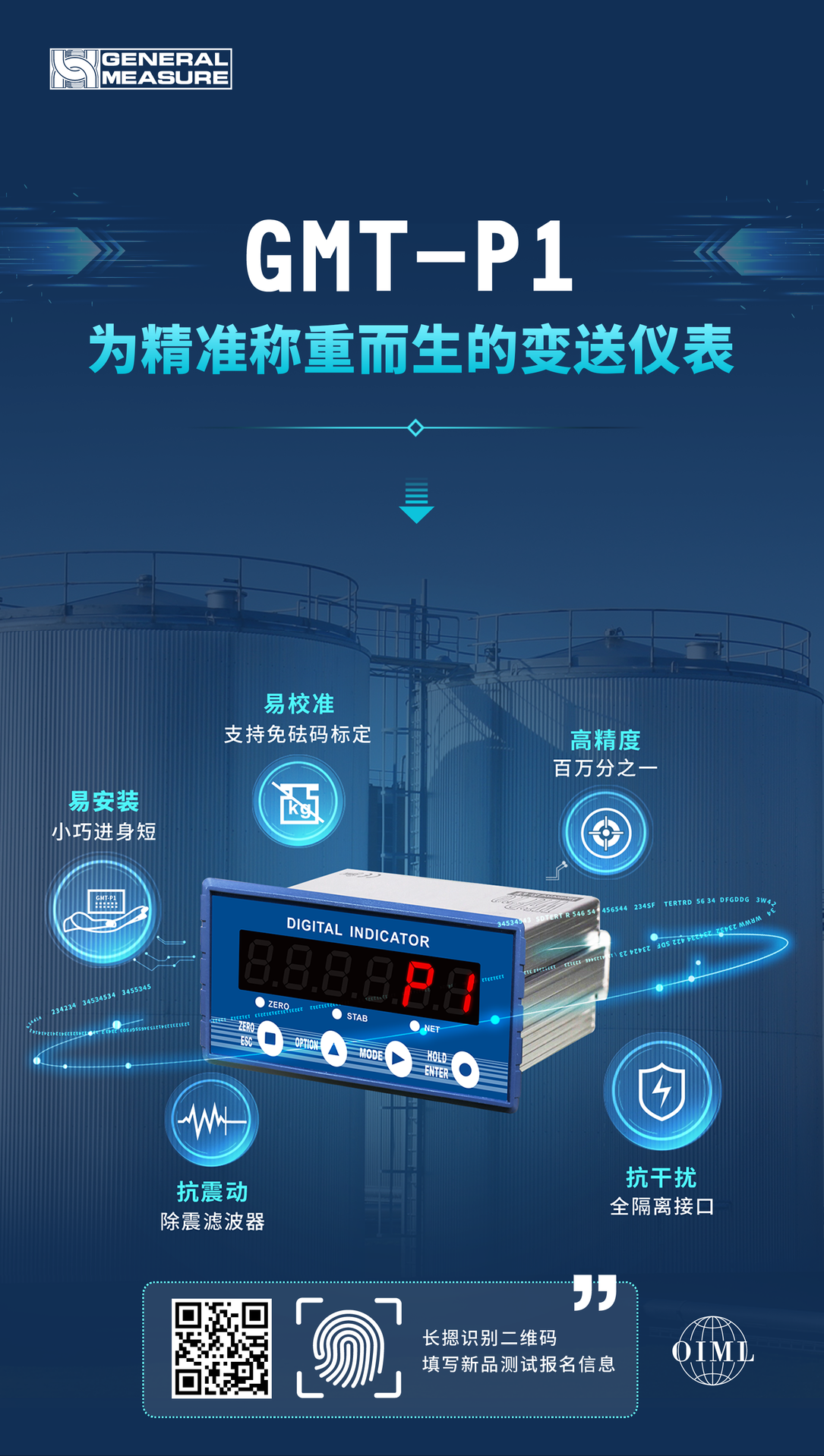 杰曼稱重變送儀表 GMT-P1 全新上市,獲OIML國際計(jì)量認(rèn)證,搭載二次算法的除震濾波器,強(qiáng)大的抗震功能,輕松上手,穩(wěn)定測(cè)量。