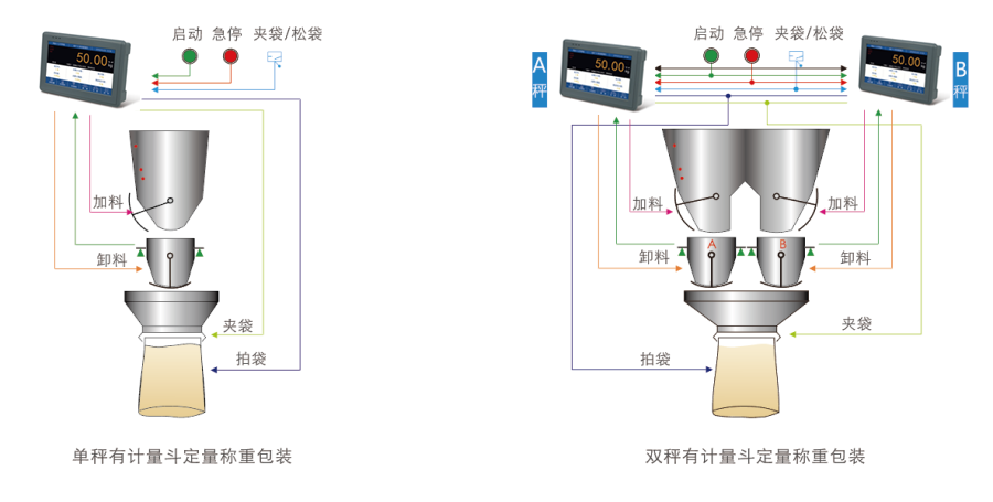● 支持有斗、無斗、噸包、閥口、PLC五種模式