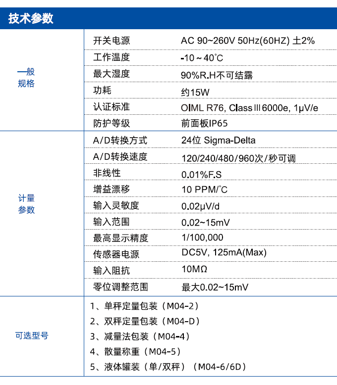 M04稱重控制儀表是針對(duì)工業(yè)現(xiàn)場(chǎng)涉及到稱重包裝、散糧稱重、液體罐裝應(yīng)用而開(kāi)發(fā)的控制儀表,廣泛應(yīng)用于糧食、種子、飼料、化肥、水泥、化工等行業(yè)。